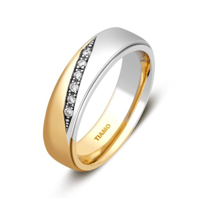 Обручальное кольцо из комбинированного золота с бриллиантами TIAMO (002111)