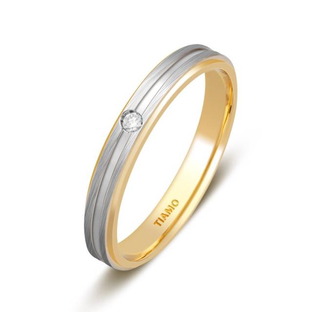 Обручальное кольцо из комбинированного золота с бриллиантом TIAMO (000048)