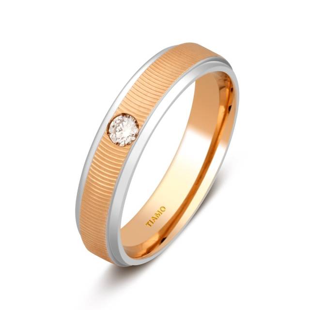 Обручальное кольцо из комбинированного золота с бриллиантом TIAMO (000074)