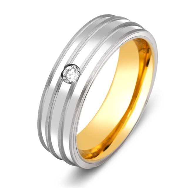 Обручальное кольцо из комбинированного золота с бриллиантом TIAMO (000104)