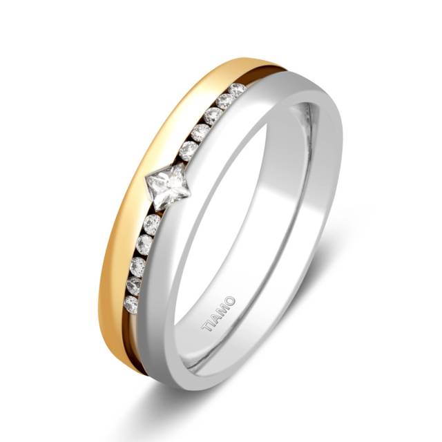Обручальное кольцо из комбинированного золота с бриллиантами TIAMO (000662)