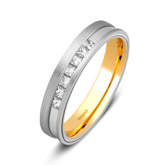 Обручальное кольцо из комбинированного золота с бриллиантами TIAMO (000663)