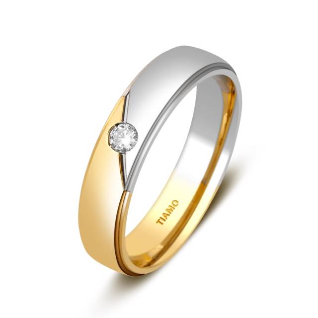Обручальное кольцо из комбинированного золота с бриллиантом TIAMO (000068)