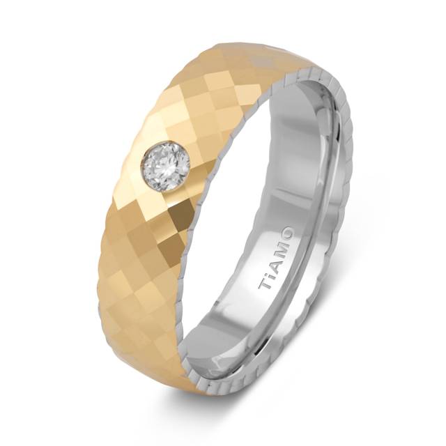 Обручальное кольцо из комбинированного золота с бриллиантом Tiamo (041077)