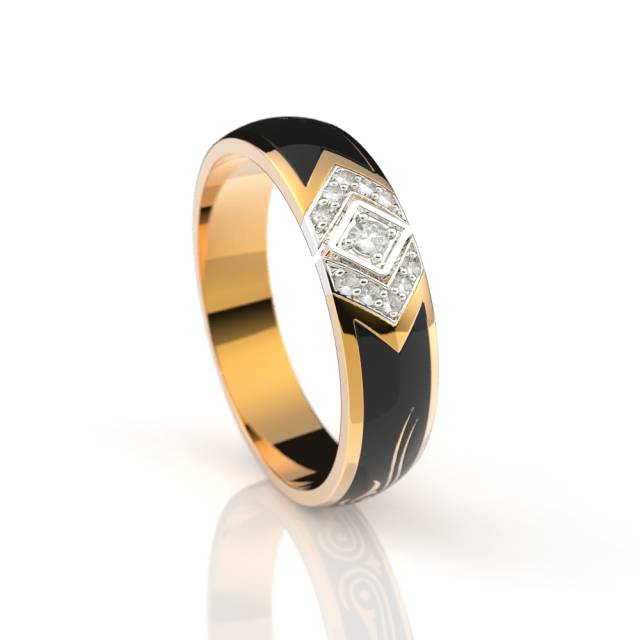 Обручальное кольцо из красного золота с бриллиантами и эмалью (038553)