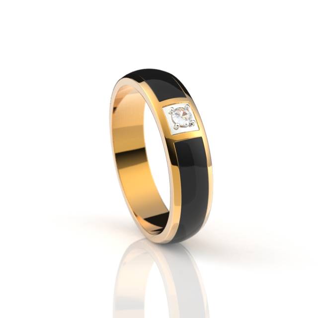 Обручальное кольцо из красного золота с бриллиантом и эмалью (038590)