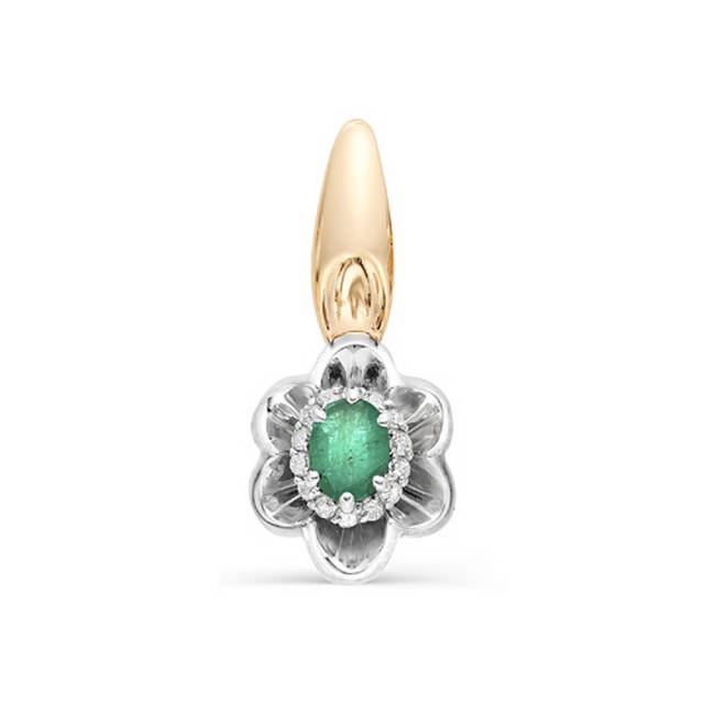 Подвеска из комбинированного золота с бриллиантами и изумрудом (031452)