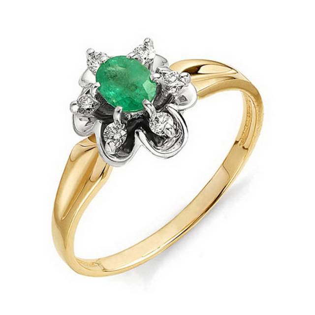 Кольцо из комбинированного золота с бриллиантами и изумрудом (031255)
