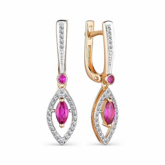 Серьги из красного золота с бриллиантами и рубинами (046965)