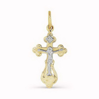 Подвеска крест из комбинированного золота с бриллиантом (031405)