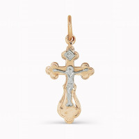 Подвеска крест из комбинированного золота с бриллиантом (031406)