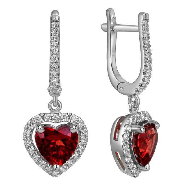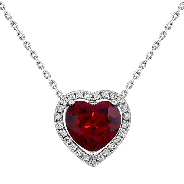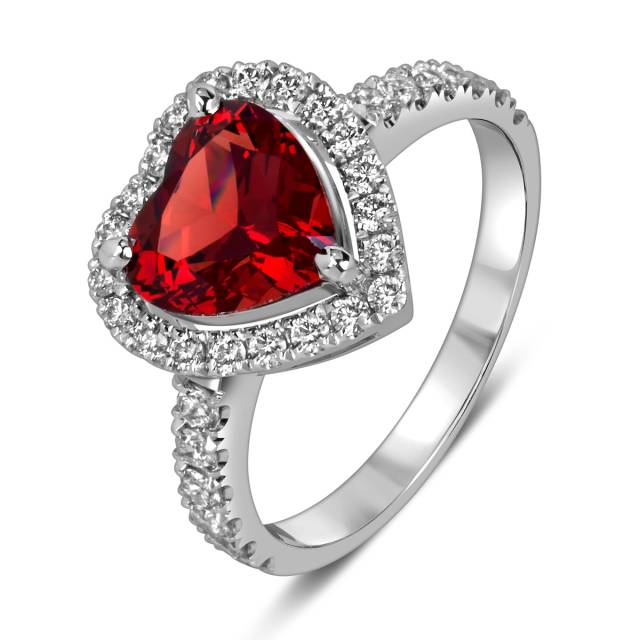 Помолвочное кольцо из белого золота с бриллиантами и гранатом "Сердце" (060135)