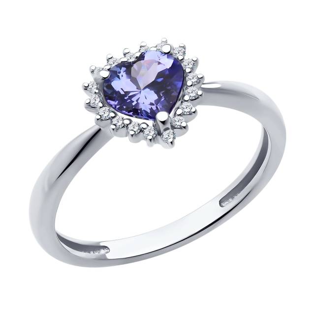 Помолвочное кольцо из белого золота с бриллиантами и танзанитом "Сердце" (056211)