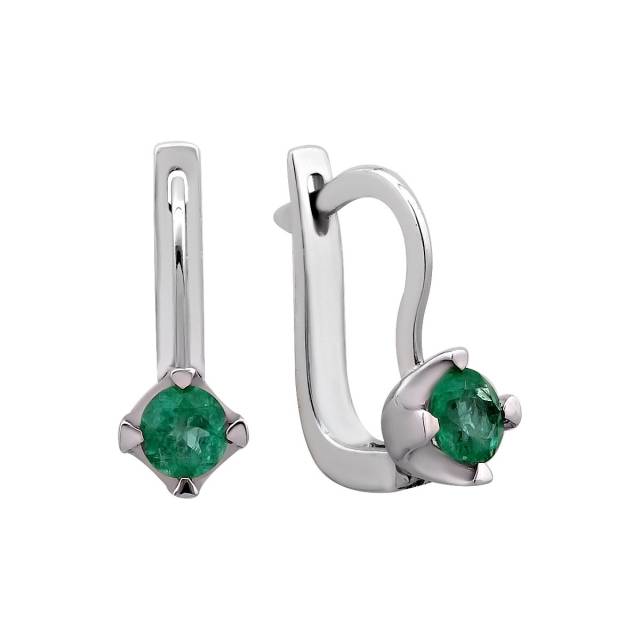 Серьги из белого золота с изумрудом (026071)