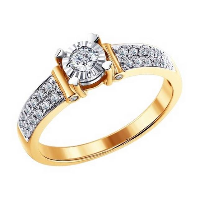 Помолвочное кольцо из комбинированного золота с бриллиантами (025041)