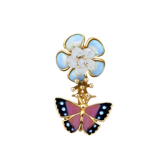 Кулон из жёлтого золота с цирконом, эмалью и перламутром (023945)