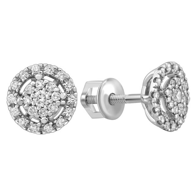 Серьги пусеты из белого золота с бриллиантами (047431)