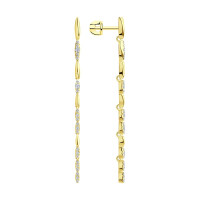 Серьги протяжки из жёлтого золота с бриллиантами и жемчугом Акойя (047666)