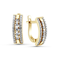 Серьги из жёлтого золота с черением и цирконами (018177)