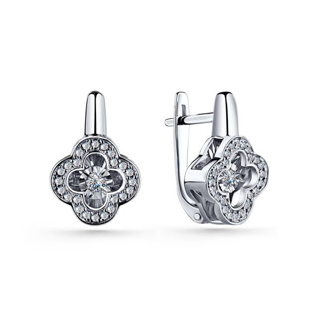 Серьги пусеты из белого золота с бриллиантами (060001)