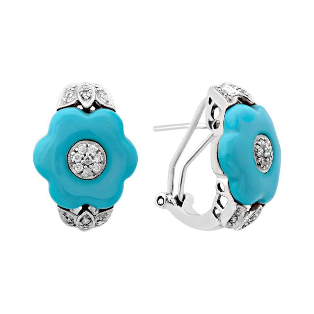 Серьги из белого золота с бриллиантами и бирюзой (017896)