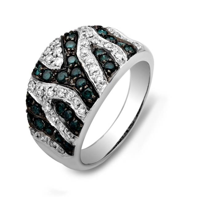 Серьги из белого золота с бриллиантами и голубыми бриллиантами (020495)