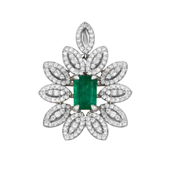 Кулон из белого золота с бриллиантами и изумрудом (038834)