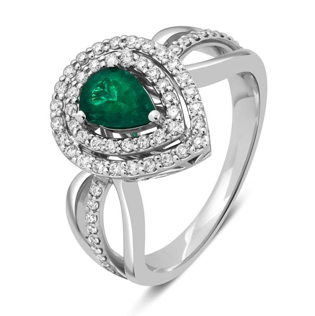 Кольцо из белого золота с бриллиантами и ирзумрудом (047640)