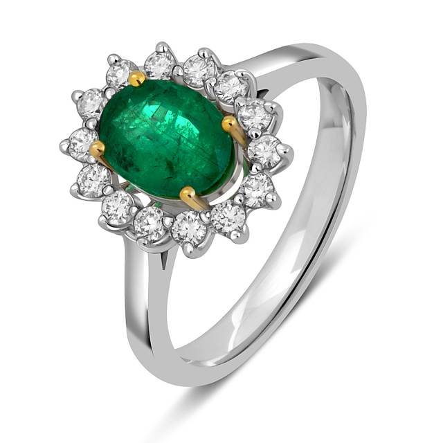 Кольцо из белого золота с бриллиантами и изумрудом (051334)
