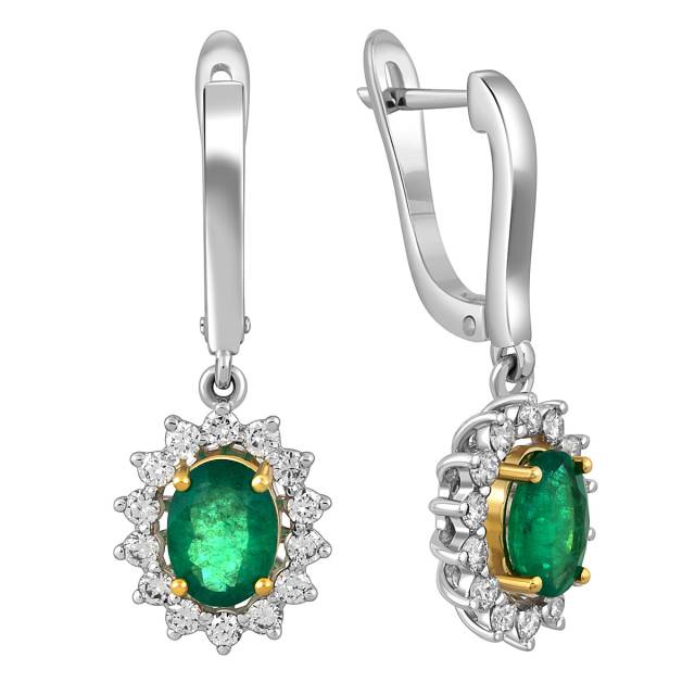 Серьги из белого золота с бриллиантами и изумрудами (051333)