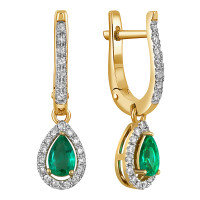 Серьги из жёлтого золота с бриллиантами и изумрудами (015414)