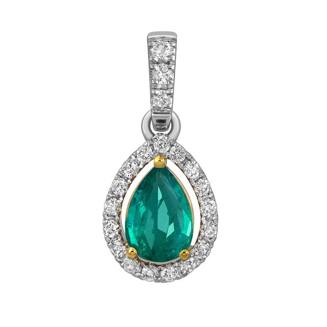 Кулон из белого золота с бриллиантами и изумрудом (052544)