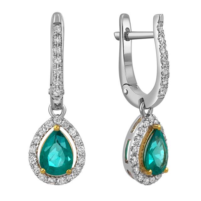 Серьги из белого золота с бриллиантами и изумрудами (052542)