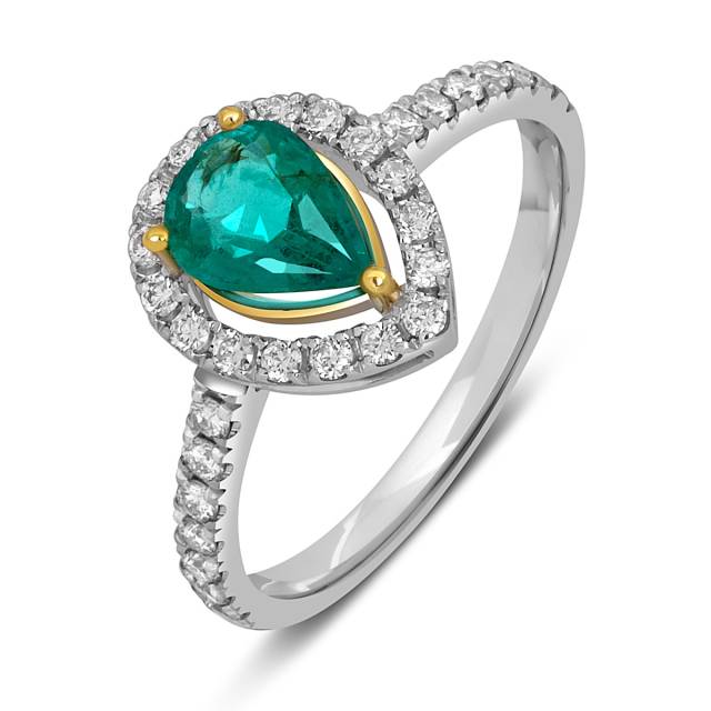 Кольцо из белого золота с бриллиантами и изумрудом (052547)