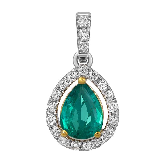 Кулон из белого золота с бриллиантами и изумрудом (052545)
