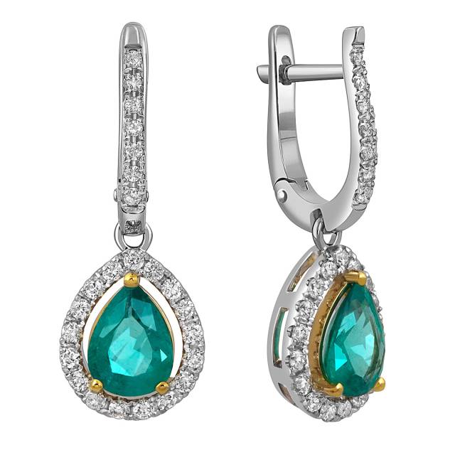 Серьги из белого золота с бриллиантами и изумрудами (052546)