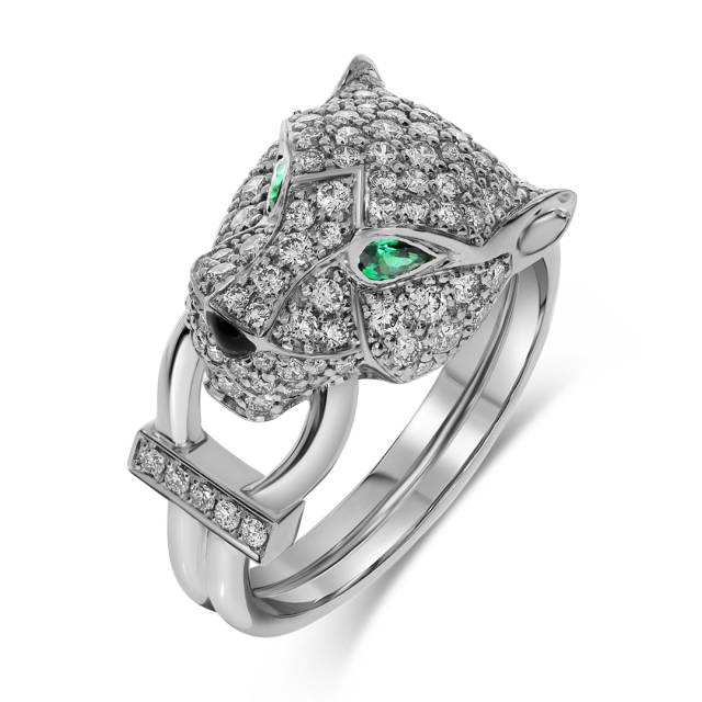 Кольцо из белого золота с бриллиантами и изумрудами (060525)