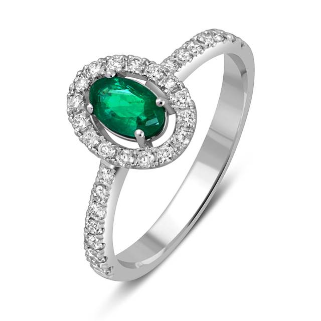 Кольцо из белого золота с бриллиантами и изумрудом (052582)
