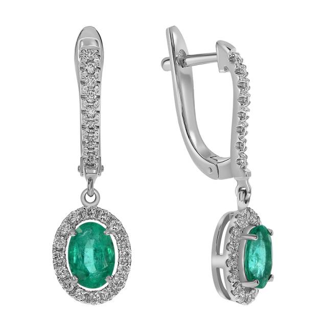 Серьги из белого золота с бриллиантами и изумрудами (061118)
