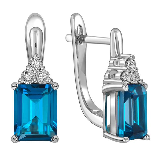Серьги из белого золота с бриллиантами и лондон топазом (059187)