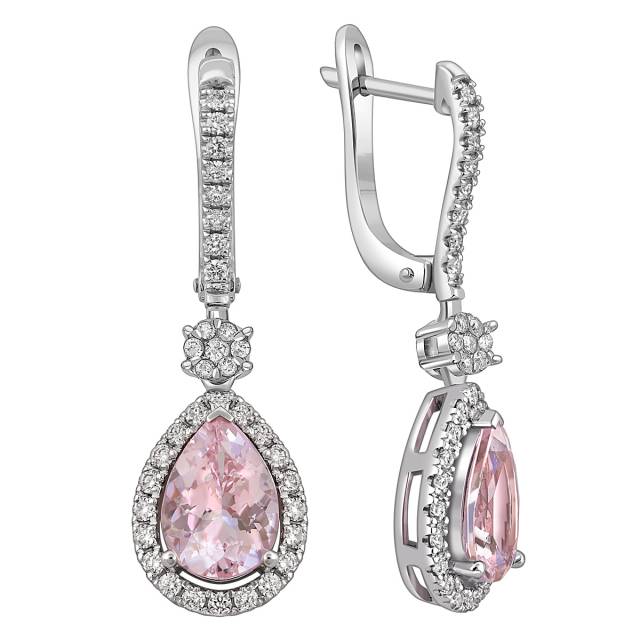 Серьги из белого золота с бриллиантами и морганитами (058457)
