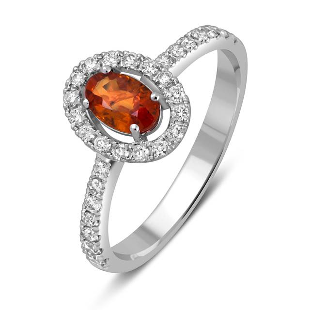 Кольцо из белого золота с бриллиантами и оранжевым сапфиром (052579)