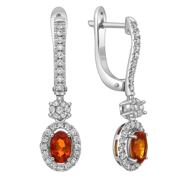 Серьги из белого золота с бриллиантами и оранжевыми сапфирами (052580)