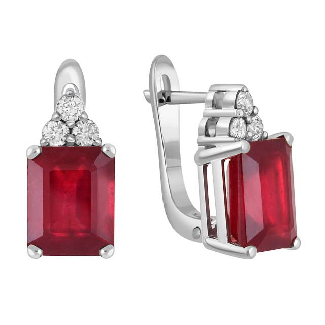 Серьги из белого золота с бриллиантами и рубинами (046920)