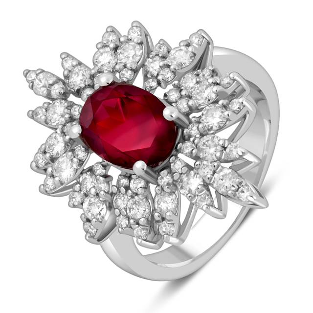 Кольцо из белого золота с бриллиантами и рубином (055531)