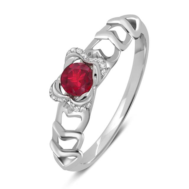 Кольцо из белого золота с бриллиантами и рубином (047810)