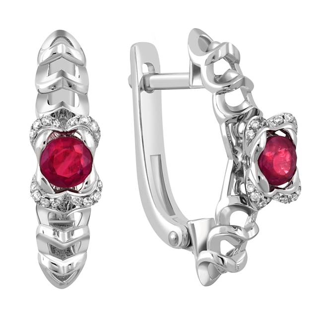 Серьги из белого золота с бриллиантами и рубинами (047811)