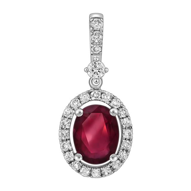 Кулон из белого золота с бриллиантами и рубином (049388)