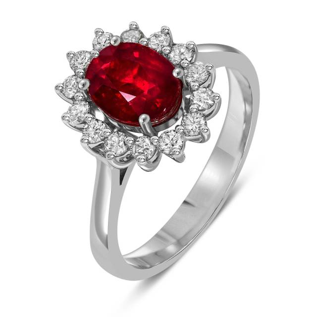 Кольцо из белого золота с бриллиантами и рубином (046082)