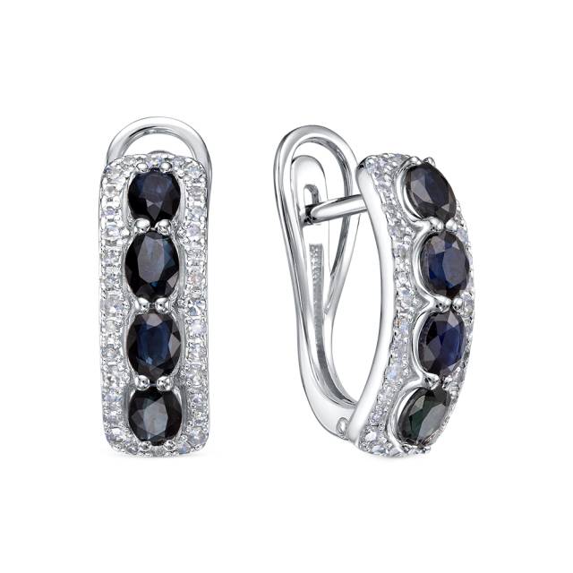 Серьги из белого золота с бриллиантами и сапфиарми (058855)